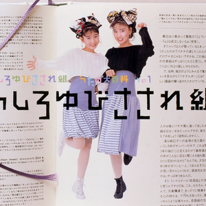 うしろゆびさされ組 (Ushiroyubi Sasaregumi) was a Japanese idol duo formed by おニャン子クラブ (Onyanko Club) members 高井麻巳子 (Takai Mamiko) and 岩井由紀子 (Iwai Yukiko) while still in the main group. At first glance, they seemed to be an odd couple due to the height difference - Mamiko was around 5' 4 (~162cm) while Yuyu barely reached 4' 11 (~150cm). But the 2 girls actually worked out quite well providing both a visual and vocal contrast - Mamiko had a more mature voice while Yuuyu seemed eternally stuck in prepubescence. Being current members of the おニャン子クラブ had it's perks - the rest of the girls would happily provide a massive vocal back-up for the duo. うしろゆびさされ組 made their television debut on 30 September 1985. Over the course of the group's career, they released six singles, three albums, a concert video, and two photobooks (in addition to the anime TV series ハイスクール!奇面組 High School! Kimengumi soundtrack albums). The group disbanded after Mamiko's graduation from おニャン子クラブ on 5 April 1987. Afterward, they went to relatively successful solo careers. Read more on Last.fm. User-contributed text is available under the Creative Commons By-SA License; additional terms may apply.
