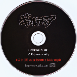 ギルティア (Gilltia) was a Japanese visual kei band, formed in 2008. Members: Vo. 遥 -Haruka- (RED → ギルティア → D'eiz) Gu. Vivi Gu. 唯 -Yui- (Ruincrear → ギルティア) Ba. 暢 -Nobu- (Meteor-ミーティア- → ギルティア → Luzmelt (暢-nov-)) Dr. nayuki (Meteor-ミーティア- → ギルティア) Their activities started with a live distributed single Escape from the Cage. Their first single CLOWN was released in April 2009, followed by 雪月花 (Setsugekka) in May. The 3rd single Cold Room was scheduled for release at the end of June but they stopped the sale and distributed it at lives instead. Bassist Nobu decided to leave the band, and shortly after the rest of the members, except for Haruka, decided to leave as well. They disbanded after their first oneman on 8/25. Official Site: https://root.theworkpc.com/music/preview?img=http://www.gilltia.com/ Official Myspace: https://root.theworkpc.com/music/preview?img=http://www.myspace.com/gilltia Read more on Last.fm. User-contributed text is available under the Creative Commons By-SA License; additional terms may apply.