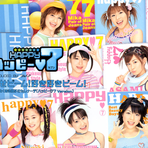 Happy 7 (ハッピー♥7) was one of three special shuffle units from Hello! Project in the summer of 2002. The shuffle theme was happiness and Happy 7 was the most upbeat, perky group of the three. They released only one single, Shiawase Beam! Suki Suki Beam! (幸せビーム!好き好きビーム!; Happy Beam! Love Love Beam!) which included their version of a c/w song that was shared by all three shuffles. True to their name, they had seven members selected from Morning Musume (Ai Kago, Ai Takahashi, Makoto Ogawa, and Risa Niigaki), Coconuts Musume (Mika), Country Musume (Asami), and Melon Kinenbi (Hitomi Saitou). The other two shuffle units that year were Sexy 8 and Odoru 11. Read more on Last.fm. User-contributed text is available under the Creative Commons By-SA License; additional terms may apply.