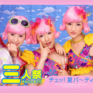 三人祭 (Sannin Matsuri) was one of three special shuffle units from Hello! Project in the summer of 2001. They sold the most singles out of the three groups. The shuffle theme was summer festivals and they had a cute beach-themed song. They released only one single, Chu! Natsu Party (チュッ!夏パ~ティ; Smooch! Summer Party) which included their version of a c/w song that was shared by all three shuffles. True to their name, they had three members. Two were selected from Morning Musume (Ai Kago and Rika Ishikawa), and the third member was soloist Aya Matsuura. The other two shuffle units that year were 7人祭 and 10人祭. Read more on Last.fm. User-contributed text is available under the Creative Commons By-SA License; additional terms may apply.