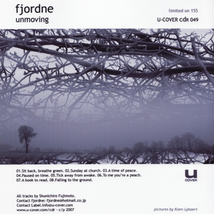 New Japanese signing on U-cover and the last release of 2007! Shunichiro Fujimoto from Tokyo has a solo project called fjordne. Here he processes only acoustic instruments such as piano and guitars into some exciting, experimental minded ambient, resulting in something that comes between the typical Fennesz and Oval sound but still with his own original sign. Unmoving is another well made debut from an artist from whom we will hear a lot more soon. Read more on Last.fm. User-contributed text is available under the Creative Commons By-SA License; additional terms may apply.