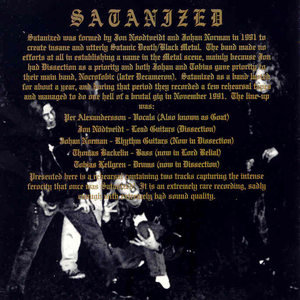 There are 4 bands called Satanized: 01) A chaotic noise rock band from Philadelphia, PA consisting of guitar, bass, drums and vocals. Philadelphia's SATANIZED were made flesh with their first live performance on the day of our Lord 06.06.06. Renowned for delivering highly intense, aberrantly convoluted, and theatrically bizarre live performances, the band has steadily conjured scathing frequencies and heavy rhythms that have left listeners trembling, pummeled and sliced - ready for sacrifice. Amid the assault, freakish moments of high musical complexity and lyrical depravity always ensure a clean kill. https://root.theworkpc.com/music/preview?img=http://www.myspace.com/stnzd666 02) Death Metal band from Canada released one demo called In Search Of Beyond at 1997 before changing name to Atheretic 03) Satanized a is black metal band from Turkey. They have influences from middle-eastern and anatolian regional melodies. The band founded by Angramainyu and Dahaka in 2005 after that Daeva joined the band. After some line-up changes, they have continued with Barbas and Thoth. They have played live at Bronx Consert Hall. Festival was a black metal festival which was called as Hell Legions Fest. They have seperated their ways with Barbas and Thoth at May 2008. In 2009 Satanized recorded a demo called as ‘Possessed By Darkness’’ and released online. 04) The black/death metal band from Sweden named Satanized was a side-project of Jon Nödtveidt (Dissection). In fact, it was formed by Jon Nödtveidt and Johan Norman in 1991 and they released only one demo, containing 2 tracks: Born in Fire and Satanized. Read more on Last.fm. User-contributed text is available under the Creative Commons By-SA License; additional terms may apply.